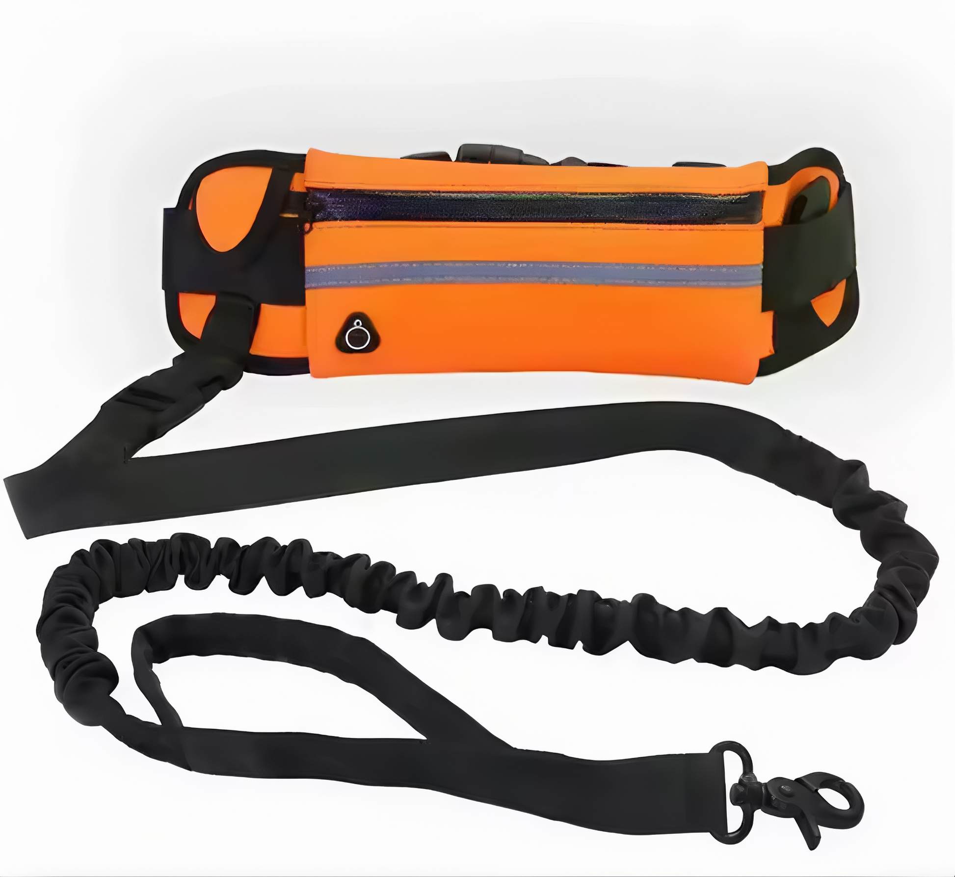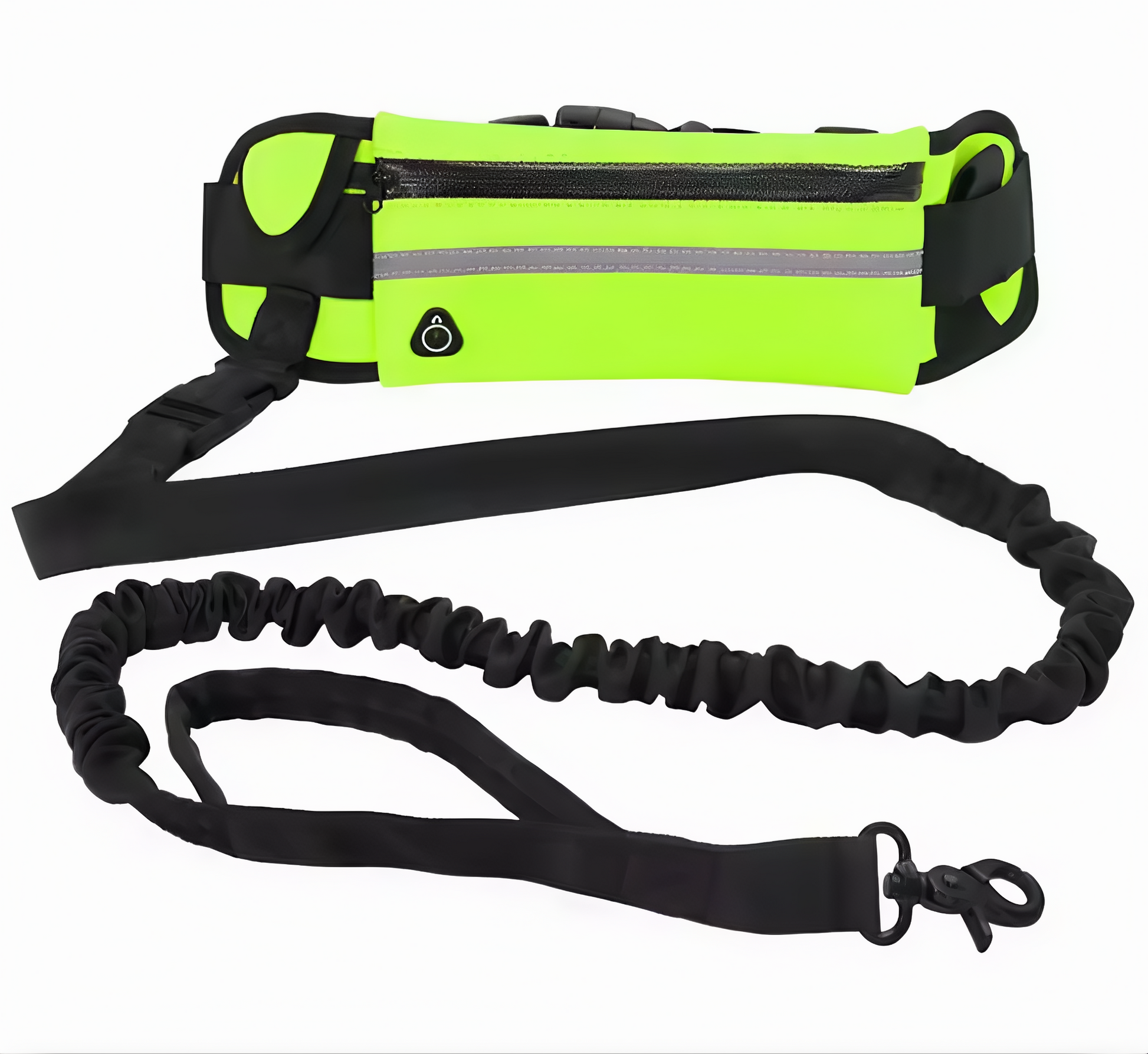 Detta "handsfree" hundkoppel är perfekt för löpning och promenader. Det reflekterande kopplet ger ökad synlighet i mörker, och det elastiska bältet ger både komfort och kontroll.